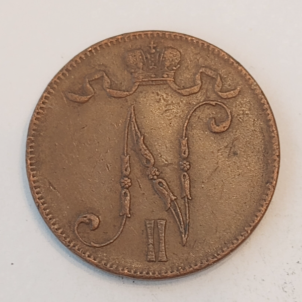 FINNISH 5 PENNIÄ 1917 , Empire Nikolaj II . RARE