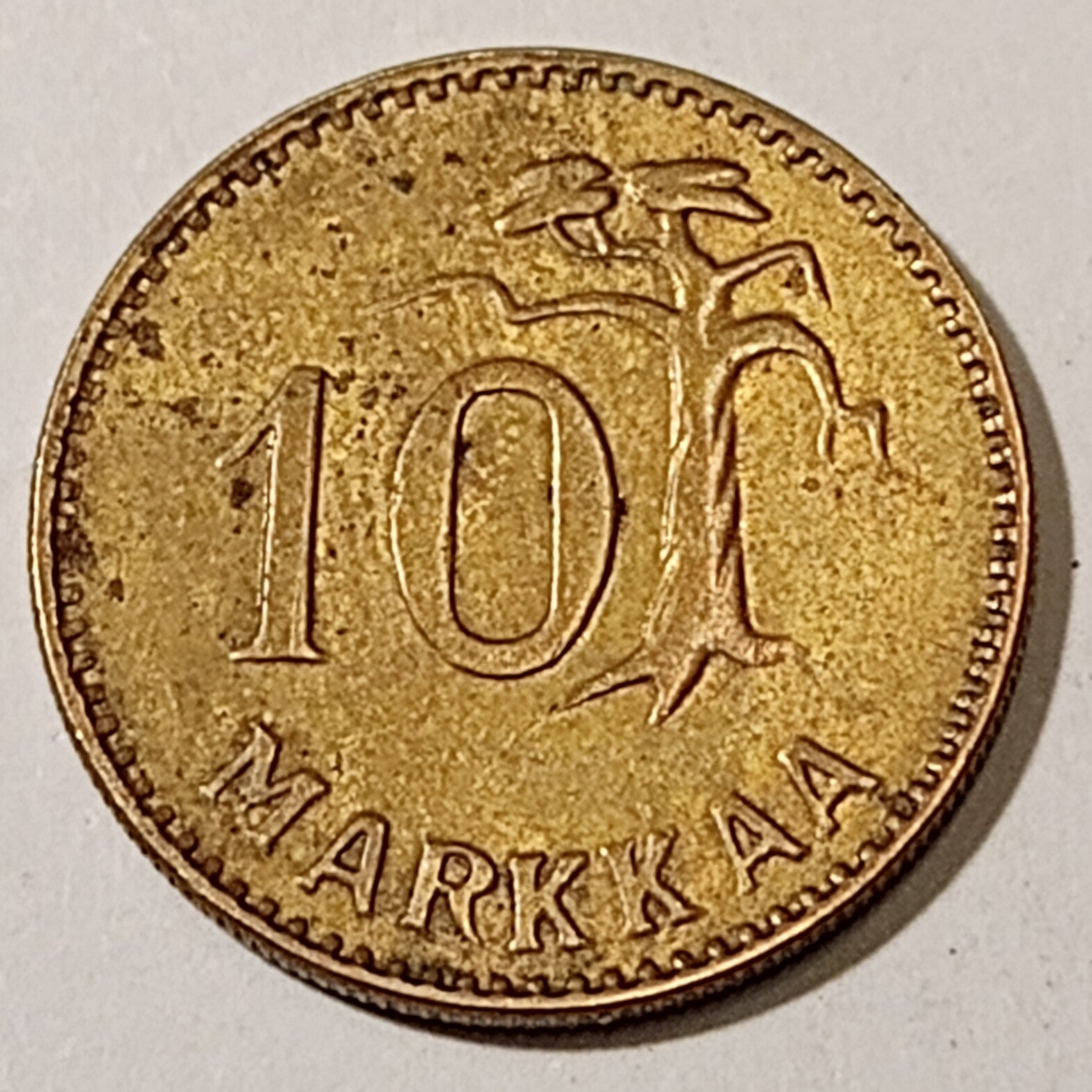 FINLAND* Republic * 10 markkaa * 1955 * Aluminium bronze * Cond. 1+
