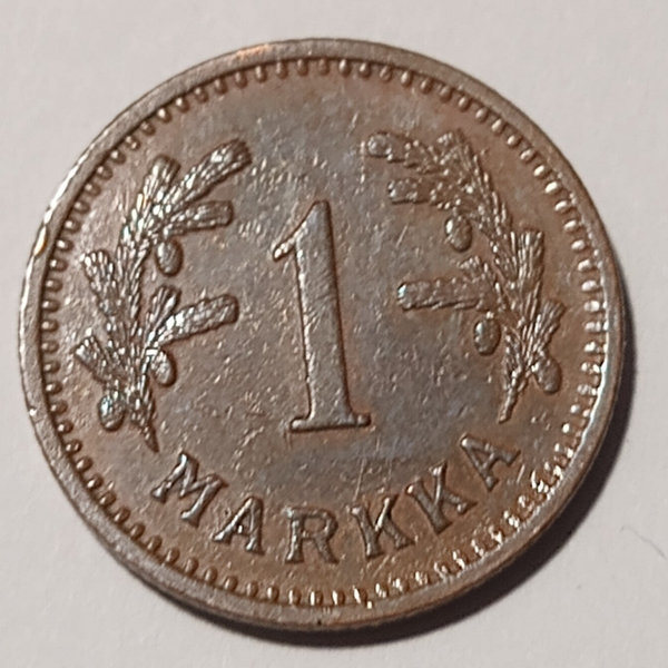 FINLAND* Republic * 1 markkaa * 1941 * Copper * Cond. 1+ *